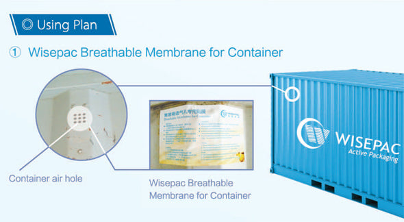 Eine speziell entwickelte, unidirektional arbeitende Klima-Membran aus atmungsaktivem Polymer-Vlies und druckempfindlichem Klebstoff wird einfach von innen über die Lüftungsschlitze des Seecontainers geklebt. Sie ermöglicht bei Temperaturschwankungen Druckausgleich und freie Luftzirkulation, unterbindet aber das erneute Eindringen feuchtaggressiver Seeluft im Tag-/Nachtwechsel. Somit wird der gefürchtete Feuchtigkeitsniederschlag an den abgekühlten Containerinnenwänden („Container-Regen“) und auf den empfindlichen Waren direkt an der Quelle gestoppt.